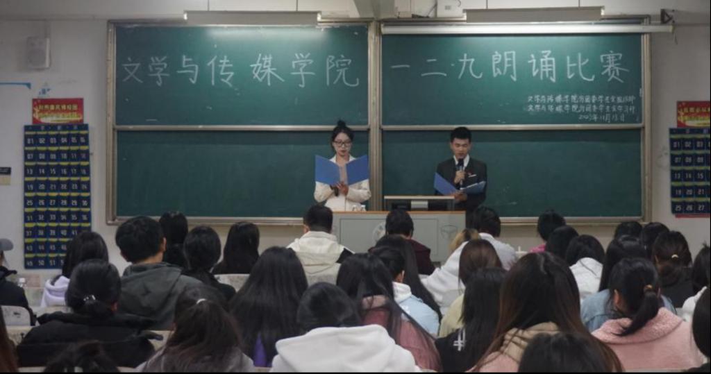 为纪念“一二·九”员工爱国运动88周年,11月18日晚,公司在教学楼A1-305举行了“一二·九”爱国诗歌朗诵比赛。本次比赛以“薪火永相传,青春正激昂”为主题,旨在通过朗诵经典爱国诗歌,弘扬爱国主义精神,引导员工铭记历史,缅怀先烈,传承红色文化。