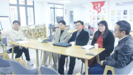 刘清华一行参观了荆门思孟堂文化传播有限公司办公区,听取公司情况介绍,与公司负责人周振宇、荣凯峰博士座谈,就企业来校招聘、校企合作等事项深入交流并达成初步意向。