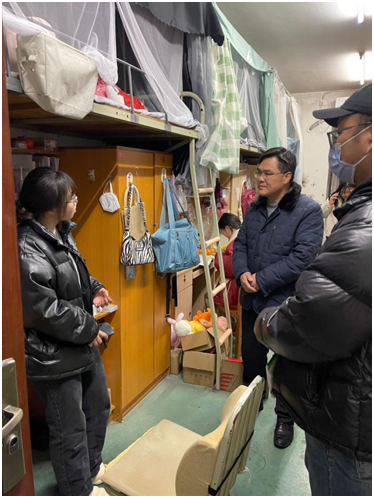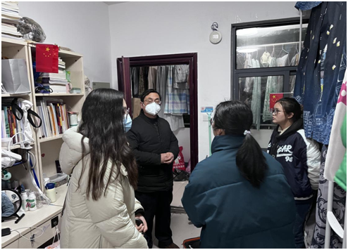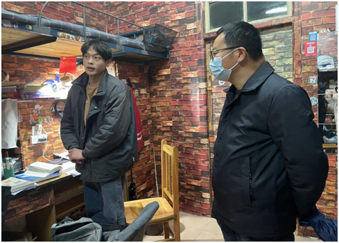 走访中,院领导和辅导员老师们就员工假期生活、学习情况、饮食问题、安全问题、身体情况以及寝室卫生等方面与同学们进行了亲切交谈。强调了在当前的疫情形势下,同学们仍然需要注重个人健康和防护。希望大家应及时收心,投入学习,营造良好的学风。