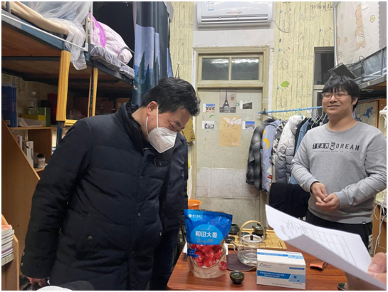 2月12日,bv伟德国际1946书记、经理带队与各位辅导员老师一道走访文园宿舍,看望慰问返校的员工。