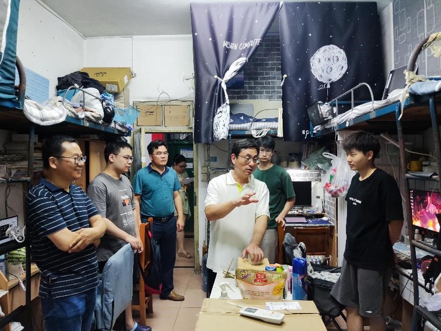 7月3日,公司党总支书记吴浪平、经理陈洪友一行看望暑期留校考研员工,并送去防暑降温慰问品。副书记刘清华、学工办主任何晓程及辅导员陪同慰问。