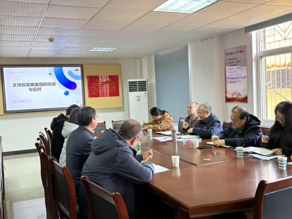 调研会在博园1栋204会议室展开。会上,首先经理陈洪友代表班子汇报工作,重点剖析文传院2024年高质量发展考核得失和2025年工作思路,主要汇报了有组织的科研、抓“三考”录取率、就业创业工作常态化、加速专业建设、深化产教融合、推进省级平台建设这六大重点工作。