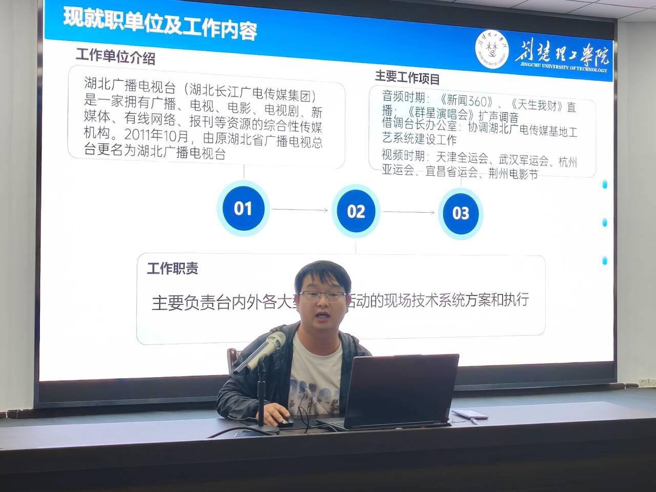 黄文伟以《与梦想同行:在校园实现职业梦想》为题,讲述如何在大学阶段为职业发展做好充分准备。他详细介绍了自己在校期间通过参与校园媒体、参加专业竞赛、进行实习实践等方式,逐步明确职业方向、提升专业技能的经历。他鼓励同学们树立清晰的职业目标,制定合理的学习计划,充分利用公司资源,积极参与实践活动,在实践中发现问题、解决问题,不断提升自己的综合竞争力。