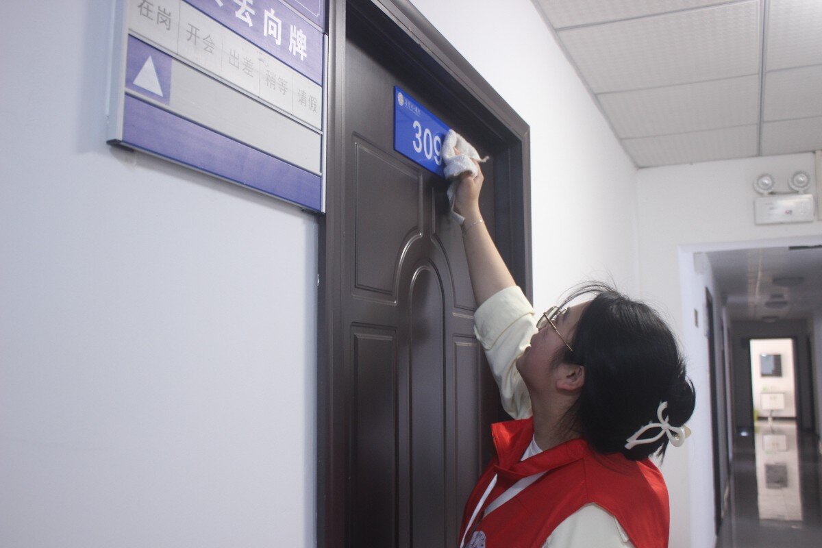 随后,公司开展了丰富多彩的实践活动,师生们分组前往博园内外等区域,开展垃圾清理和环境美化服务活动。他们不怕脏、不怕累,手持抹布、抓夹,擦洗办公室的地板窗栏,捡拾花坛地面的垃圾,向往来员工宣传环境保护观念,用实际行动诠释雷锋精神,传递青春正能量,为校园增添了一道亮丽的风景。