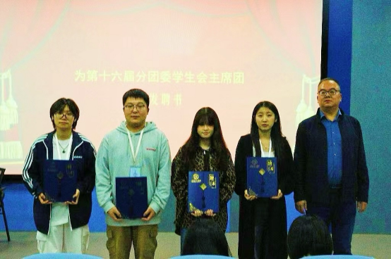 首先,第十六届分团委员工会主席兼分团委副书记袁潇骏就去年工作进行会报与总结,从工作成效、团队协作以及对未来工作的设想进行了阐释,强调了作为员工干部应有的对员工工作的责任意识与奉献精神。并由李书记、各辅导员老师们为第十六届分团委员工会主席团以及员工会骨干成员颁发聘书。