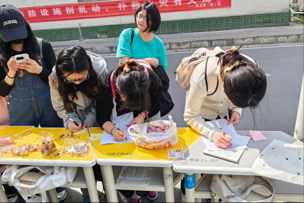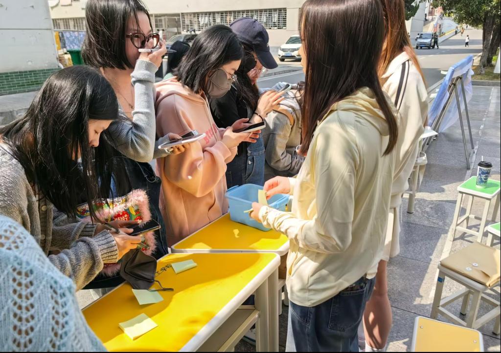 活动当天下午,阳光明媚,员工会的成员们早早布置好活动现场,准备好便利签、糖果和精美钥匙扣后便期待着大家的来临。活动开始后,参与者们在工作人员的引导下有序登记。随后,大家便选取喜欢的便利贴并在上面写下铿锵有力的反校园霸凌宣言,将宣言贴在反校园霸凌海报展览板上后,就带走一颗甜蜜的糖果。