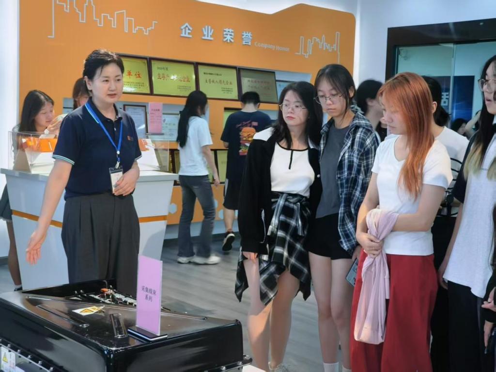 在湖北永创鑫电子有限公司,同学们依次参观了公司的生产车间、研发中心和产品展示区。企业负责人详细讲解了电子元器件的生产流程、先进制造技术的应用以及公司核心产品的研发理念。同学们对高度自动化的生产线和精密电子设备表现出浓厚兴趣,积极提问并与工程师交流,深入了解行业技术发展趋势。