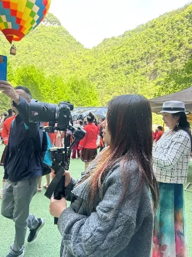 她扛着设备记录现场,在利川市融媒体中心实习中锻炼专业技能。