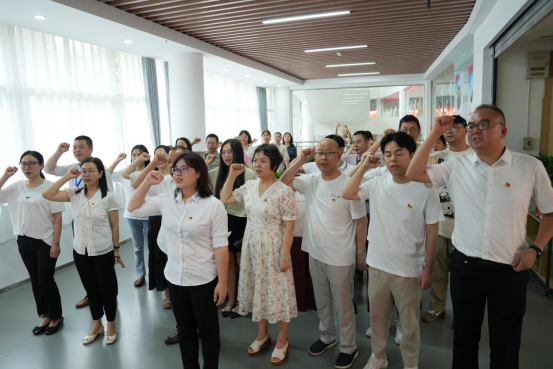 在主题党日活动中,全体党员依托馆内的红色馆藏,深入挖掘党史故事,进行了深入交流和探讨。通过面对面讲述中国共产党建党百年的艰辛历程,追寻红色记忆,坚定理想信念,激发爱国情怀。最后,全体党员重温了入党誓词,宏亮、激昂、自豪的宣誓声响彻整个会馆,大家再次回顾了共产党人的初心和使命。
