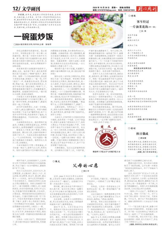 公司与《荆门周刊》合作开辟“荆楚文苑”专栏,发表bv伟德国际1946员工优秀文学作品。2024年10月28日,《荆门周刊》文学副刊版面“荆楚文苑”专栏开始刊载公司员工第一期文学作品,随后每一周将会有bv伟德国际1946员工的优秀文学作品刊登在此专栏。