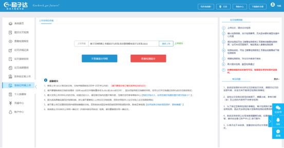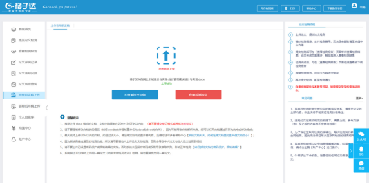 2.支持上传doc、docx、wps格式文档;公司要求对论文进行格式检测,建议提交文档格式为docx。